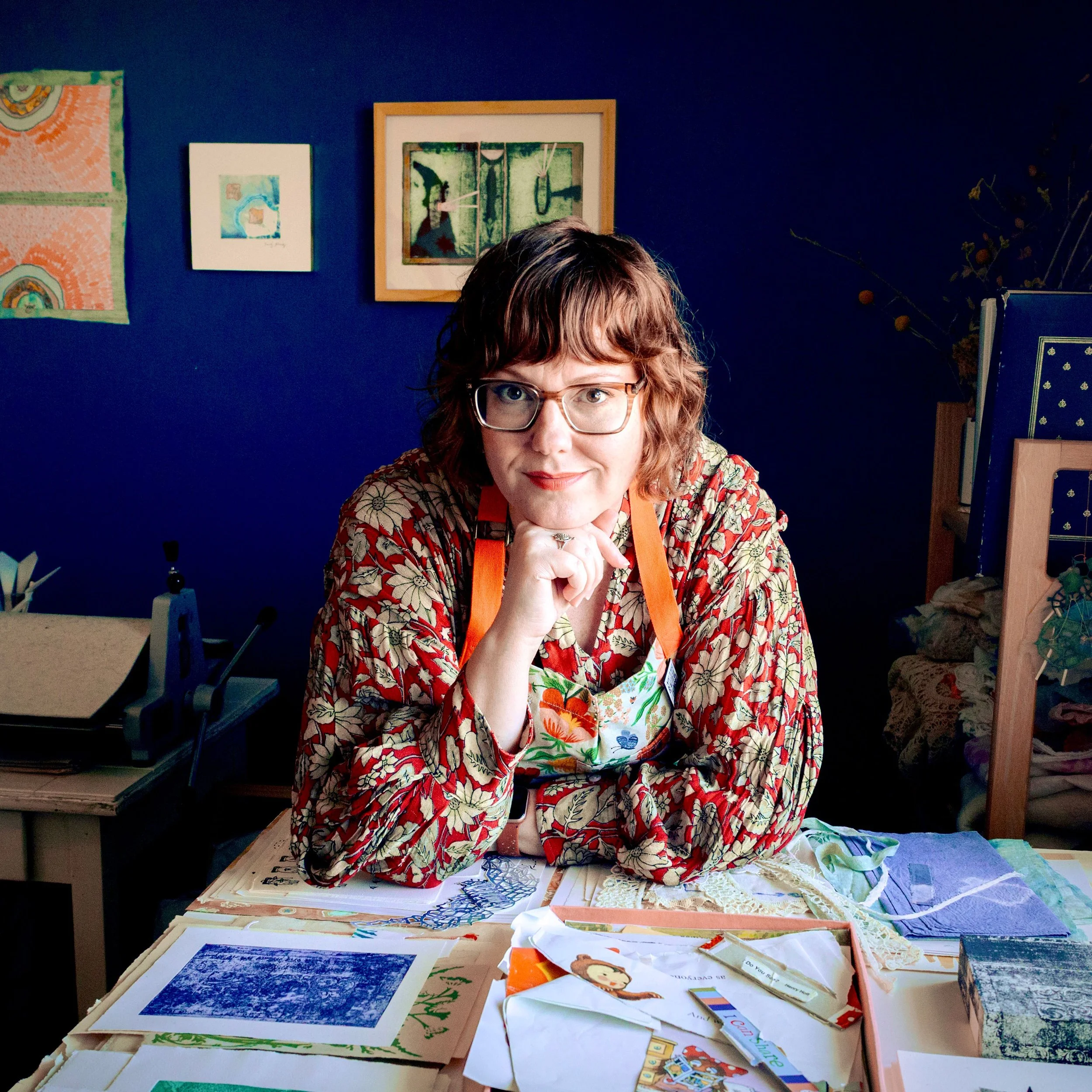 Emily Jalinsky is a mixed-media printmaking artist represented by Gilded Pear Gallery, Cedar Rapids, IA. She exhibits regionally and internationally, including solo exhibitions at La Maison du Potier, La Celle les Bordes, France, and CSPS Hall, Cedar Rapids, IA. Permanent Collections include the University of Iowa Hospital and Clinics and the Iowa City Public Library. Emily was accepted into the South Porch Artist Residency, Summerville, SC, and the Public Space One Summer Artist Residency, Iowa City, IA. She is dedicated to accessible community arts and is a founding member and instructor at the Iowa City Press Co-op, Iowa City, IA, and a prominent member of the Iowa Artist/Mother Group. She received a BFA in printmaking from the University of Kansas in 2012 and now resides and works in Iowa City, IA.